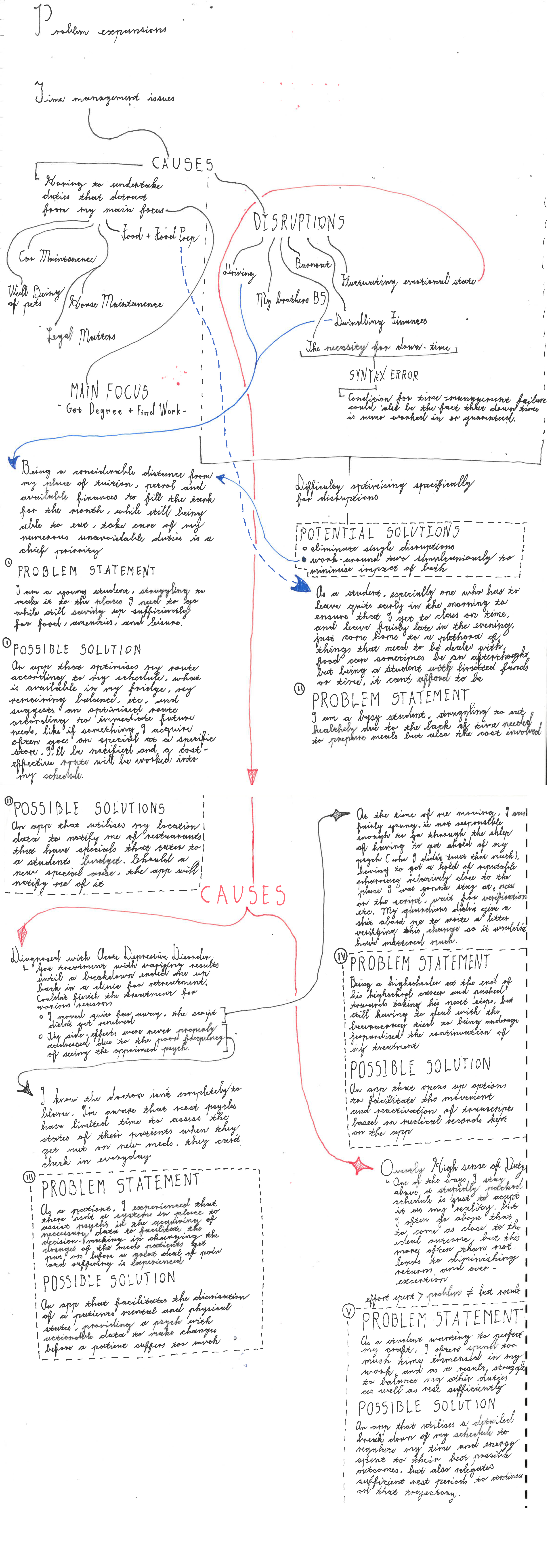 Okay, I have finally mapped everything out in condensed format (still takes up 2 A3). My problems are pieced out, and I think I got some interesting ones worth the time and effort to make an app about, I’ll display my process as soon as I get a chance to scan the shit.