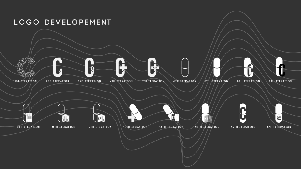 The last set of logo’s weren’t as approved as I would’ve hoped, so I revisited them and looked at other iconography associated with the medical fields, like the pill, the rx, I found a bit more info on it, it apparently comes from the Latin word “recipere” which meant a corrective course of action, its where we get the idea for a recipe, which harkens back to the days where apothecaries (precursors to practitioners of medicine) would inscribe a formula of herbs, spices, and other ingredients (as opposed to modern day drugs which have all the necessary ingredients in one pill) to patients so that they could get better.