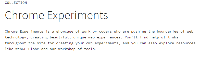 What I have done is read the brief file, the brief concept has apparently been repeated over the years and is based on something called the Google Chrome Experiments, I screen-shot their definition, something to refer back to when I work seeing as how what we are doing is based off this.