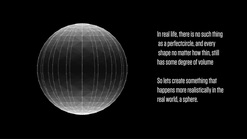 So how do I intend on doing this? I’m going to be using primitives to create a circle. What is a primitive you ask? A primative is basically a shape of extrapolated points that sit in space in such a way that the shape is technically perfect. Why use a primitive to create a circle? Humans do not have the precision to guide points manually to create a perfect circle in an acceptable amount of time (can you imagine doing the math for every point, guaranteed insanity) and the only way to do it manually in the first place is with AFX lights, which is great for more random or organic things but not perfect shapes. I will then take this perfect circle and create a sphere from the repetition of that circle around a common axis (center-point x-value of the circle, along the y-axis), I will then use the distortion function to randomise the position of points by a seed factor of Pi, then use varying amplitudes to shift that distortion to new values, both subtle and extreme.