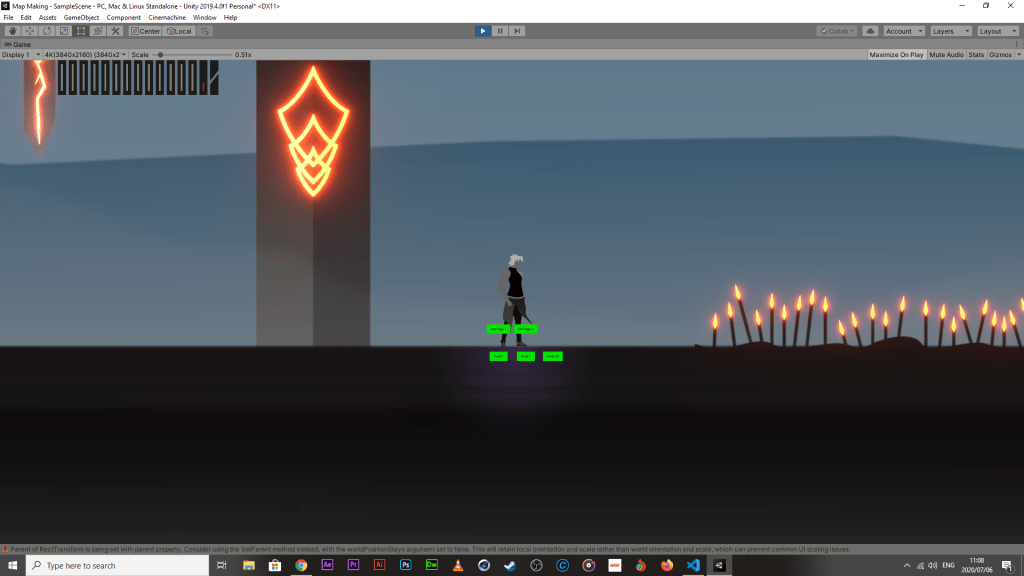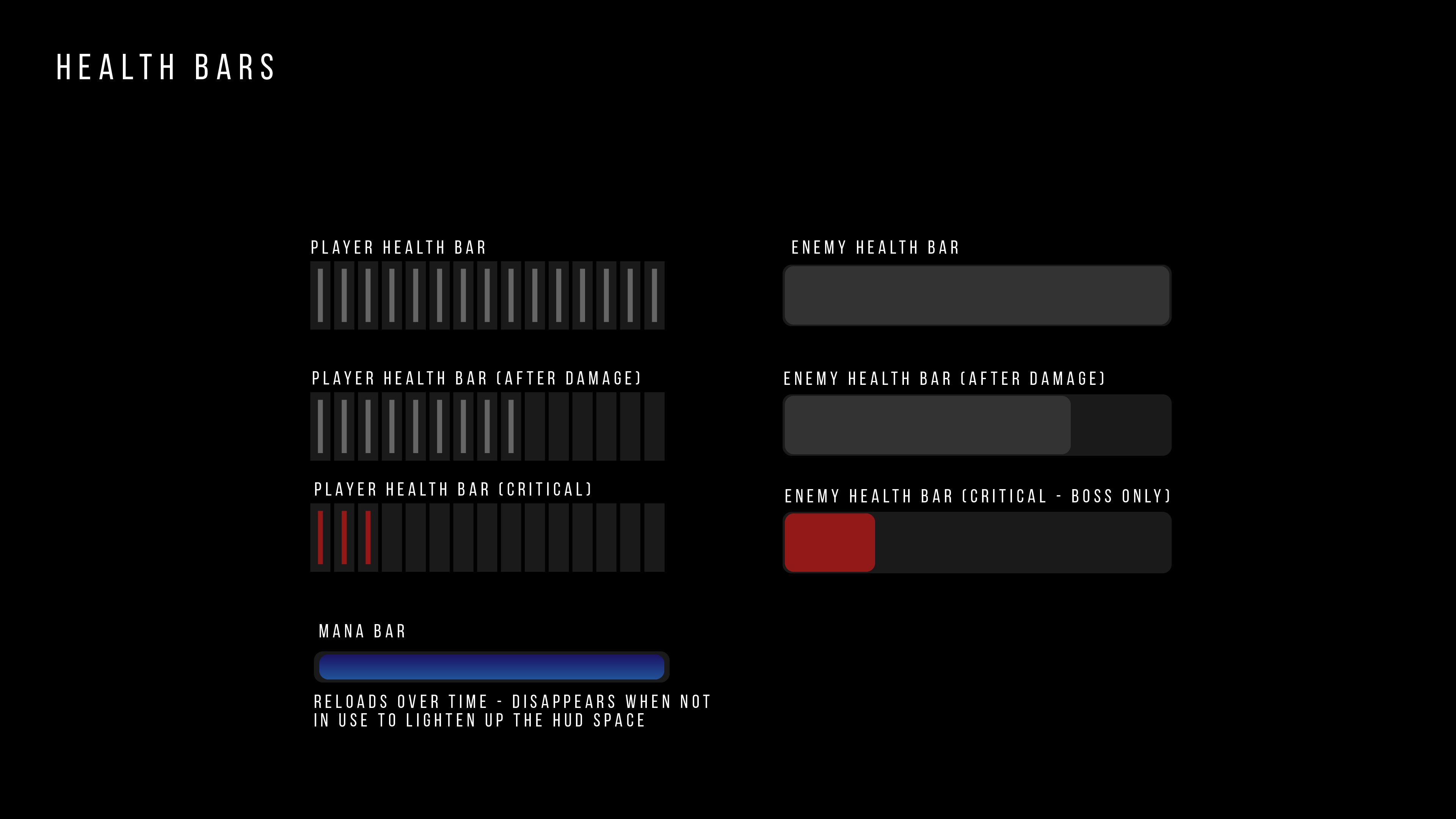 - Health bar size needs tweaking, need to figure out how to constrain canvas’ screen adaptability. UPDATE: AS OF WRITING THIS LINE, THE SIZE ISSUE HAS BEEN RECTIFIED AND SHOULD SCALE APPROPRIATELY ACROSS ALL SCREEN RESOLUTIONS Image below shows the UI scaled appropriately.