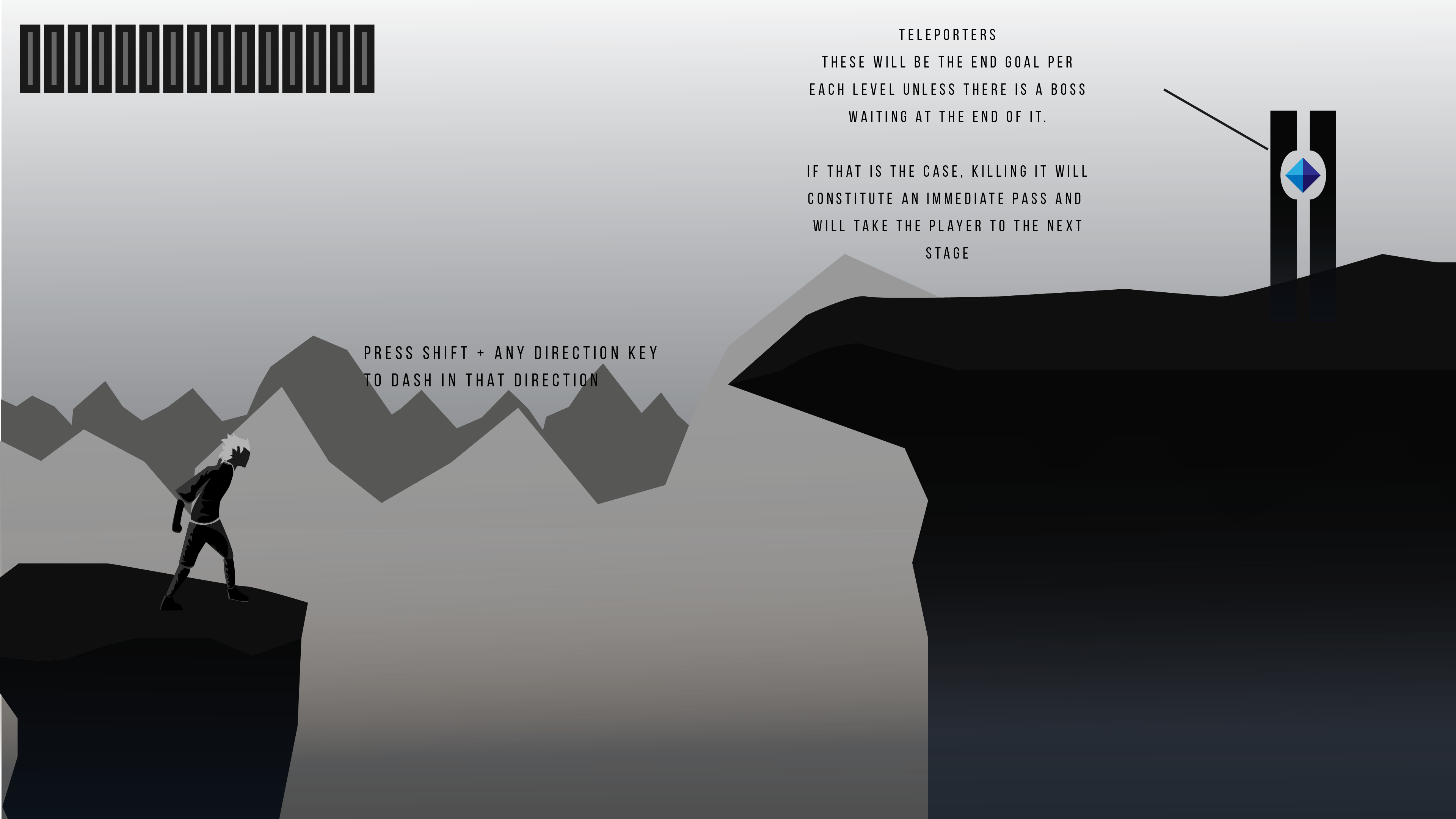- Scene exit and transition have to be built onto the teleporter (envisioned above) with prompt for trigger.