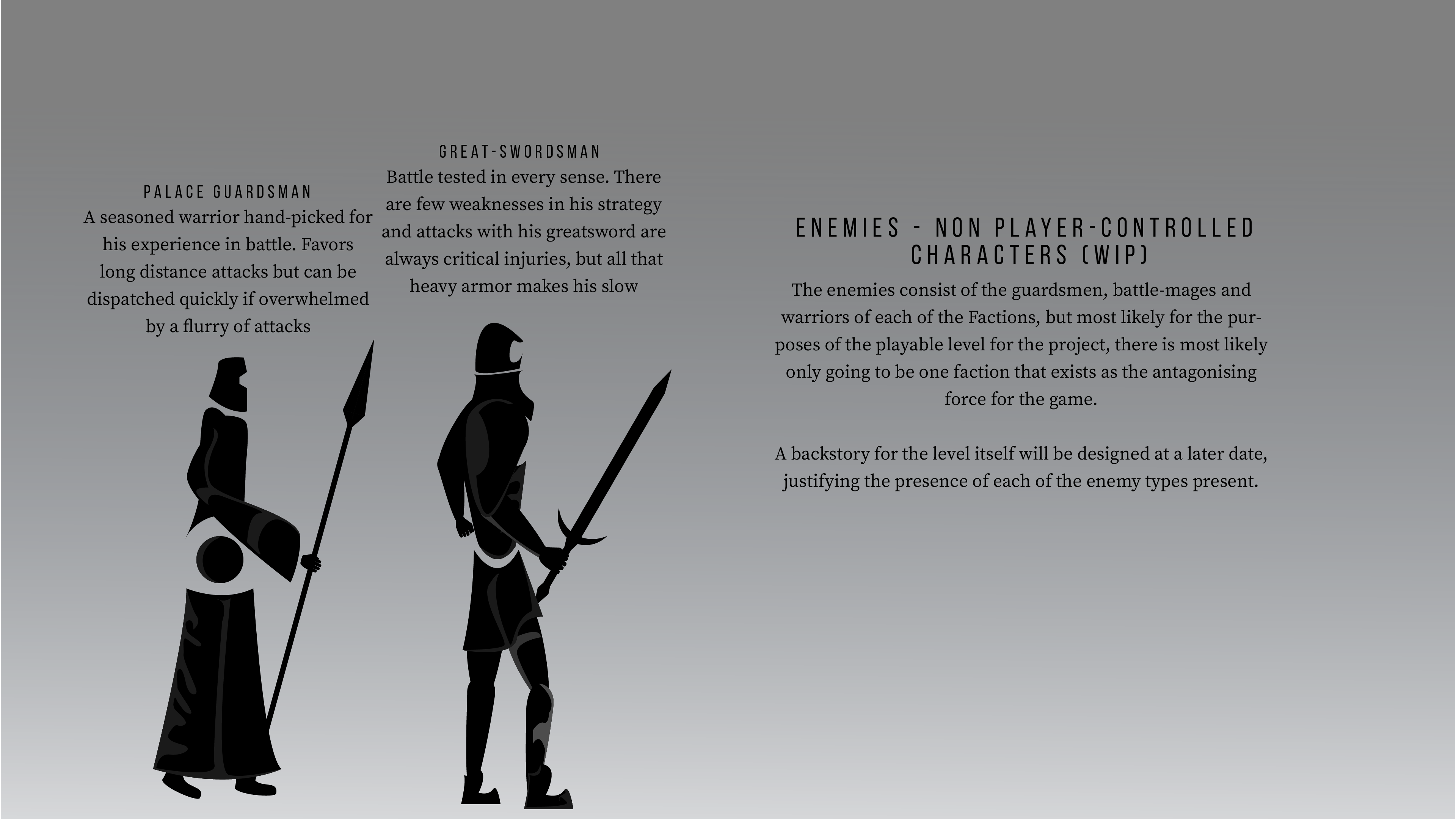 - Level borders need to be created so that the camera doesn’t go out of bounds, will be done once proper level creation is done.