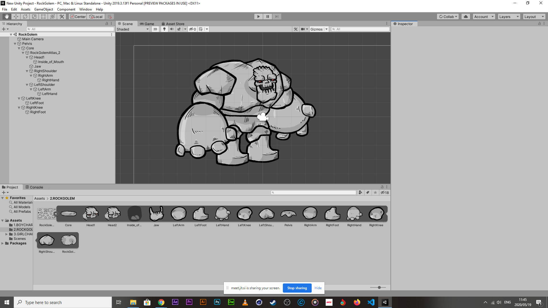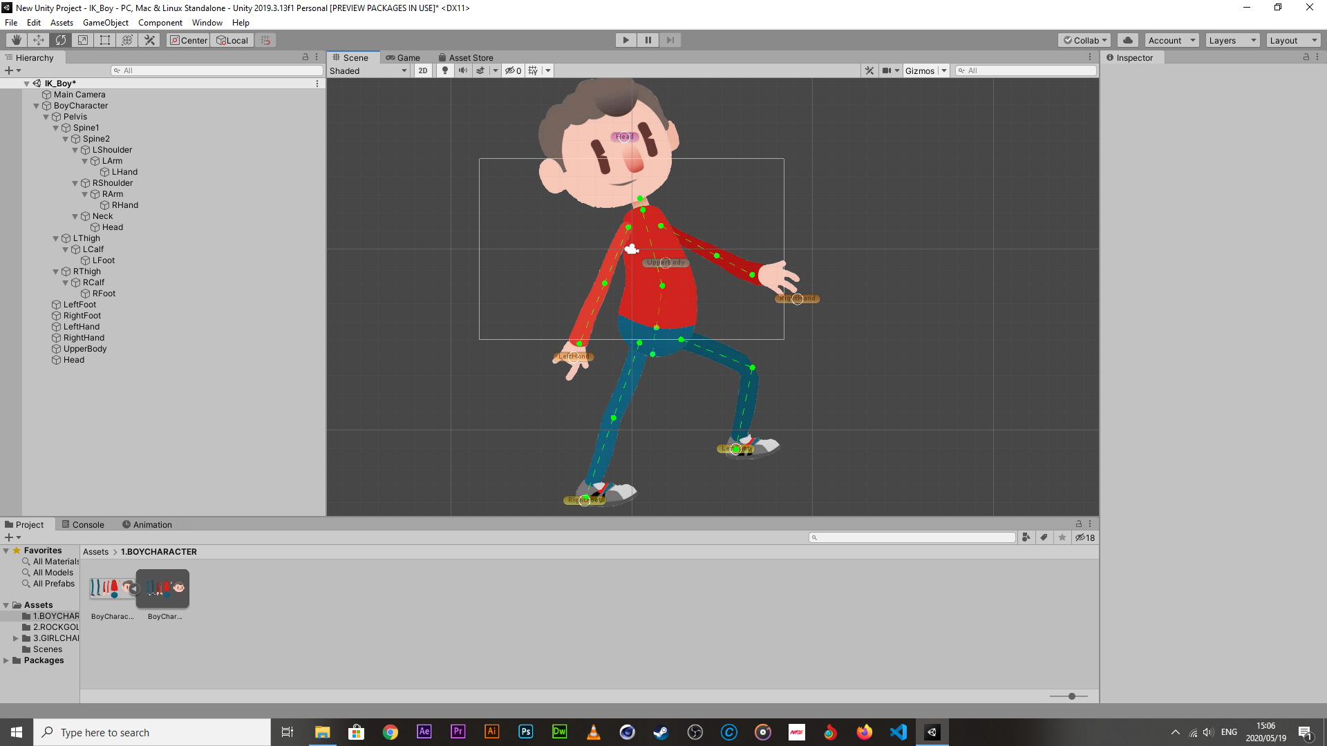 - Unity has an in-built rig system in place for building animations for characters. The way it works is that a character is first separated into its component parts in illustrator or photoshop, then exported as a png. The png is then imported into Unity, sliced back out into its component parts (this is done so that Unity recognises new boundaries of each part) and then a structural rig is then bound onto each of the components and then re-built together. This has a couple of pros, the animating process is relatively simple, speed controls for animations are simple, quick, and you don’t need to leave Unity to do it. The cons are that it is pretty limited to whats on the png after the rigging process is done.