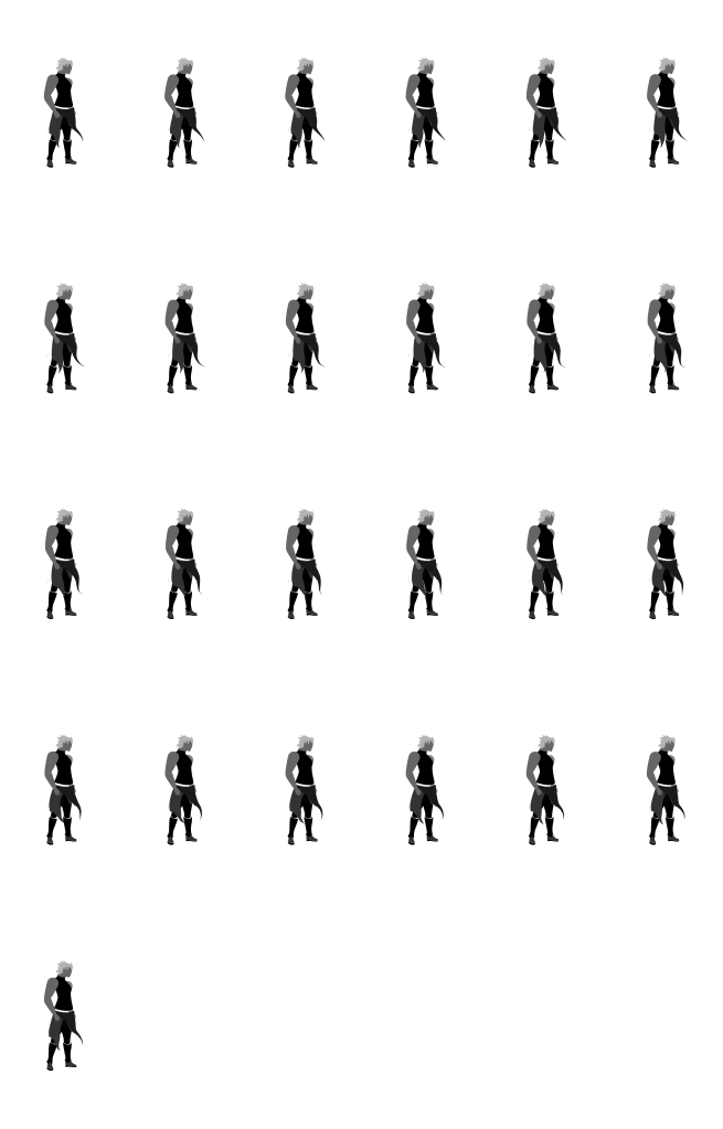 Well, I have one profile which is ideal for an idle, but it isn’t really ideal for running/walking/jumping/lateral movement in general. So my first step was to create that profile. In most 2D platformers, that profile most used for lateral movement is of a characters side, so that is the profile I needed to create.