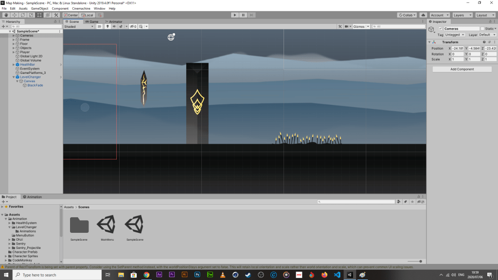 We have gone through the importing and prepping phases for characters, whether they are in a mass component sprite-sheet (so that animations can be built within Unity) or animation sprite sheet (each individual frame needed for a set of animations is rendered upon it, making it easy to quickly set up animation lists). Both have their individual uses, pros + cons (far too many to list), and it all seems to depend on the nature of your workflow and how comfortable you are with the process. After which, we were tasked with finding out what a Skybox is and experimenting further with the resources given to us for the purpose of making the importing and utilisation of visual assets second-nature.