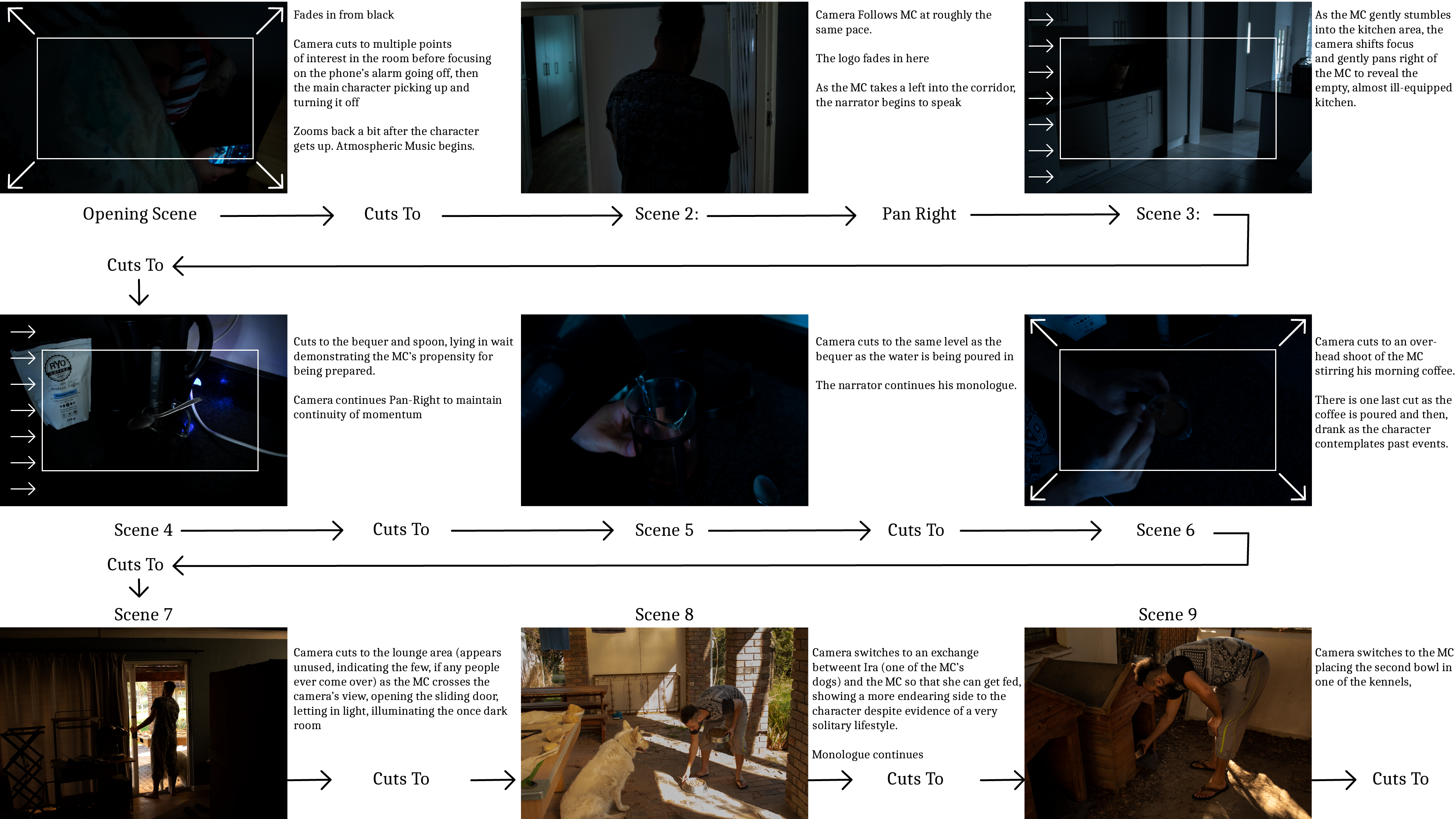 So, quite some time has passed, sorry for the late posts, its pretty easy to get caught up in the admin (a metric f-ton of it) and execution, which is where we are now – the execution stage. There is one thing here I didn’t have here that was meant to go with this lot, and that was the storyboard and style-tests. Because we got limited time, I decided that I would incorporate the style and grades I was gunning for into the storyboard itself. What I will be doing though is cutting and loose stitching the pieces together so people can get an idea of what the flow is gonna be like, and also so that I can consult for a final grade on the piece.