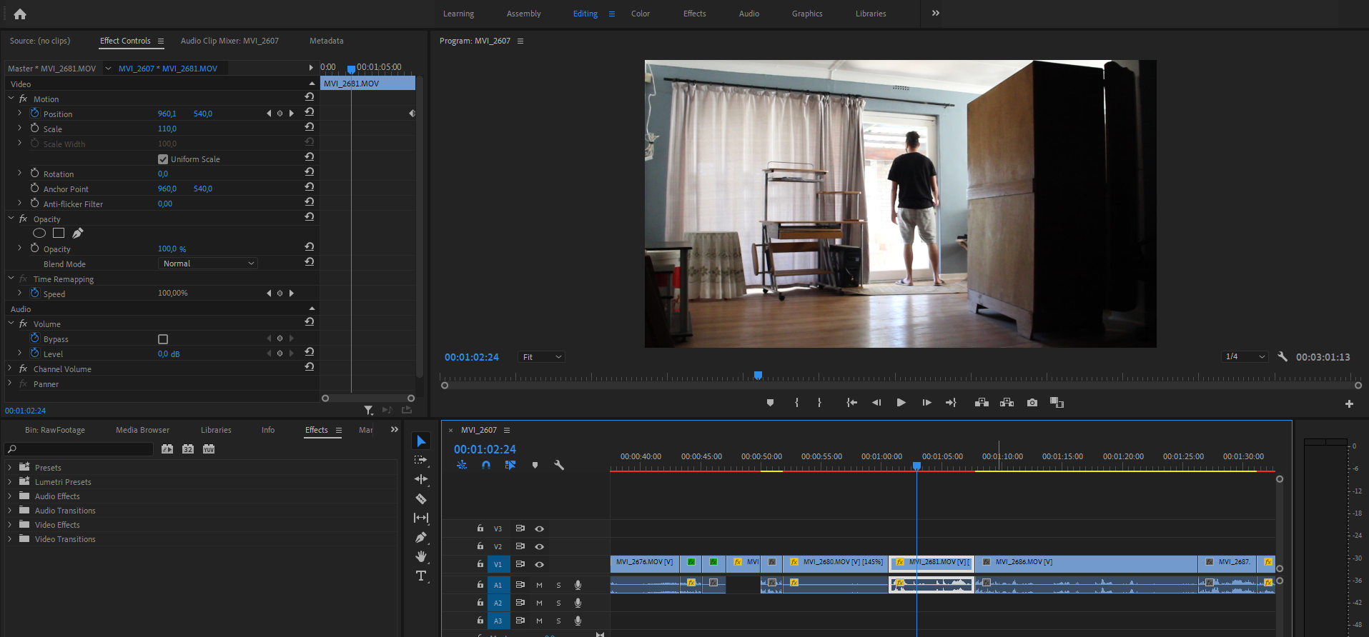 After the corrective passes, I alter the warmth a little and shift the color emphasis in the offset to better suit the overall tone of the film. Initially, I had intended that there would be two different moods to the film, one at the start of the film establishing the solitary nature of the character, and another one that emphasises that the character actually has much more than meets the eye, and I intended to show this by way of having a much more dark and somber grade at the beginning and have it change gradually to a warmer one once the dogs and family were revealed, but after a consult, I was convinced that it may not come across due to the time constraints, so I decided that I would try my hand at a fairly consistent warm grade throughout. It was a relative success. Now that the grade is done, all that’ s needed to be done is sound.